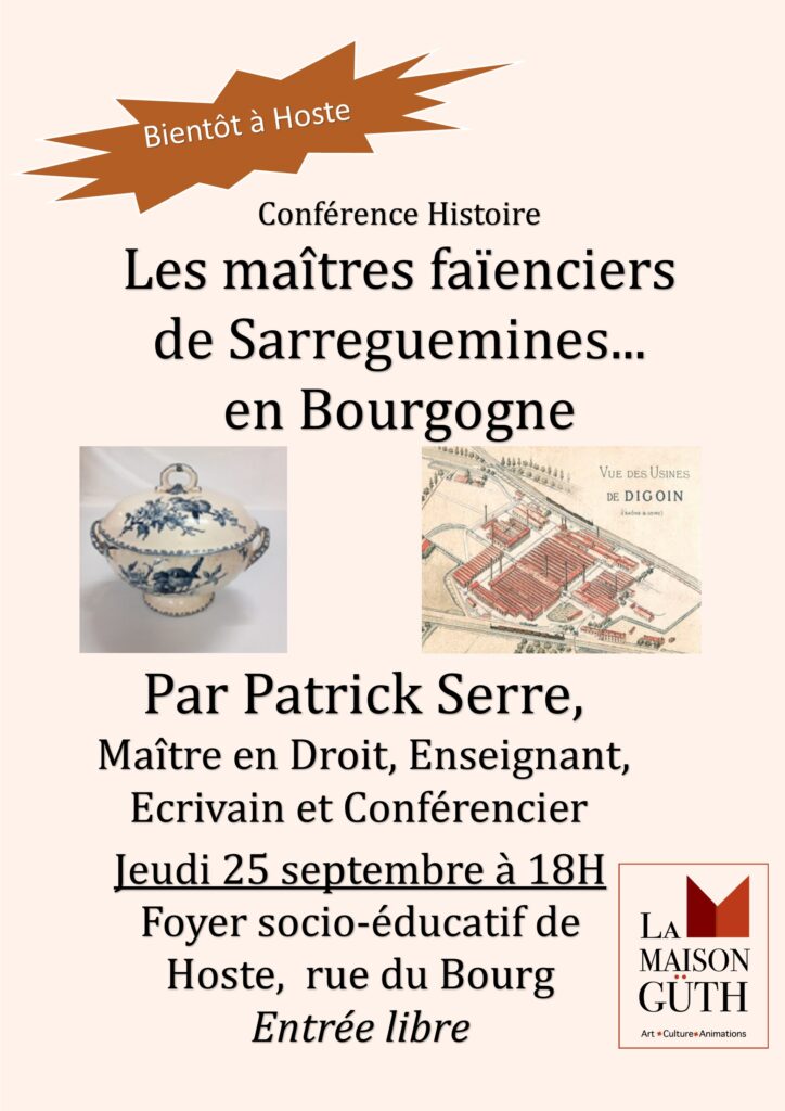 Changement de registre, avec cette conférence orientée Histoire : « Les Maîtres faïenciers de Sarreguemines…en Bourgogne« , par Patrick Serre.